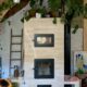 Sur la dalle de la cuisine se trouve le cœur du rocket que l’on peut voir habillé sur cette photo. Le foyer est rehaussé par un guide métallique. Les fumées passent sous le four blanc (porte blanche) et viennent lécher la plaque de cuisson avant de partir à l’étage en passant par un banc derrière le poêle